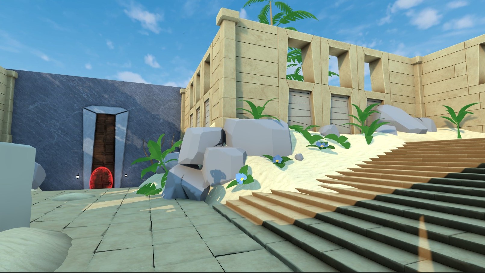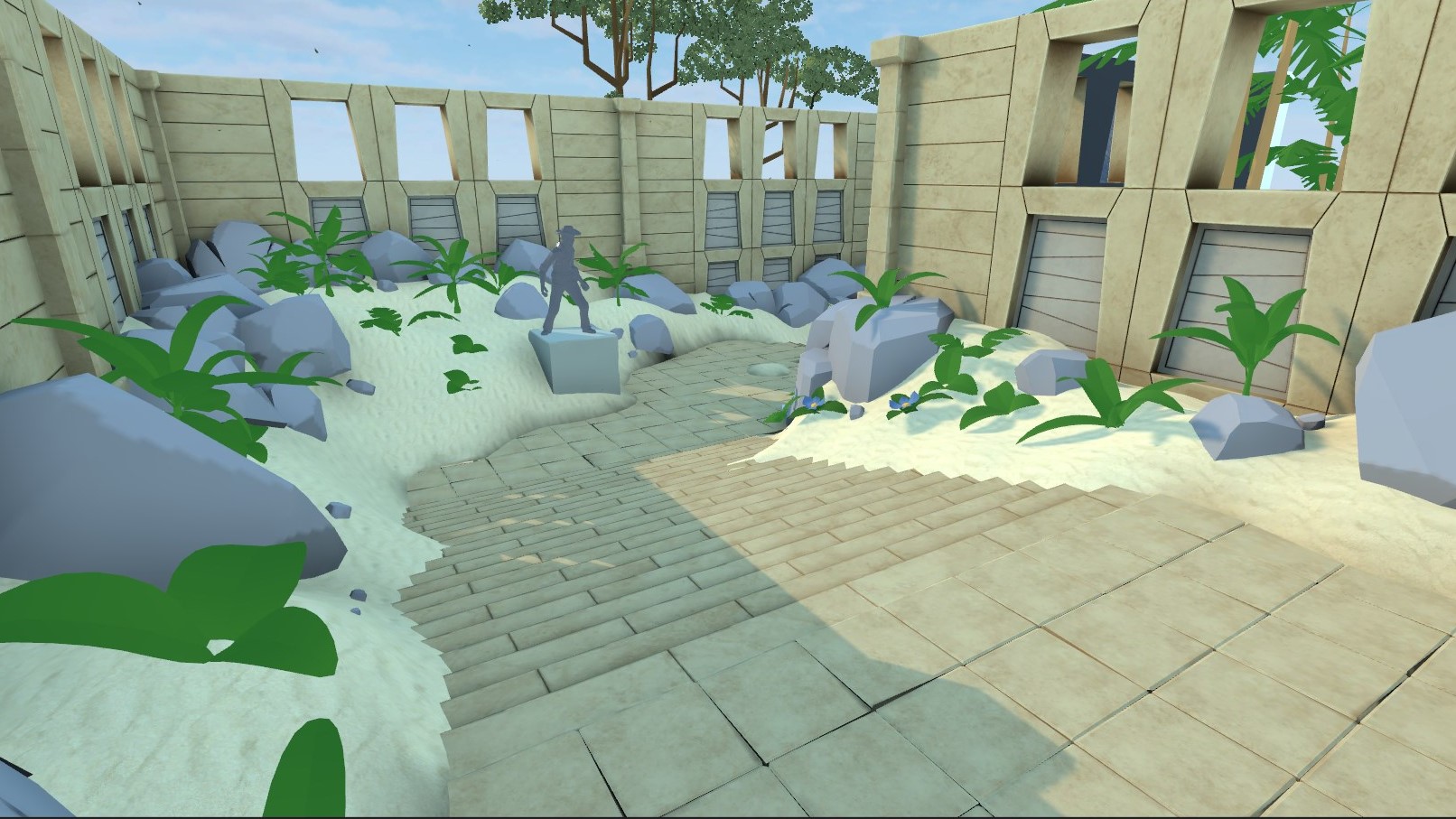As users explored the temple by walking and crawling thorugh a range of virtual environments, they navigated turns, slopes, moving platforms and object interactions. This project was, and continues to be, the most in depth exploration of the omnidieck locomotion system to date.